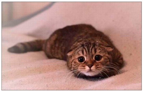 Frightened cat. Ears lowered, body lowered, dilated pupils, staring. Source: http://wrsouthshore.com/wp-content/uploads/2014/03/scardy-cat.jpg.