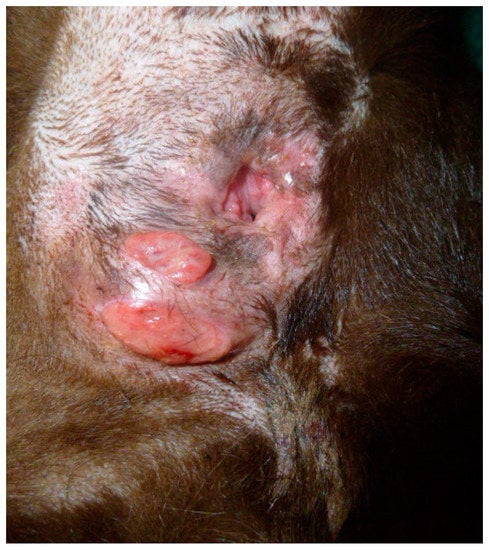 - Mellett, S.; Verganti, S.; Murphy, S.; Bowlt, K. Squamous cell carcinoma of the anal sacs in three dogs. J. Small Anim. Pract. 2015, 56, 223–225. [Google Scholar] [CrossRef] [PubMed]