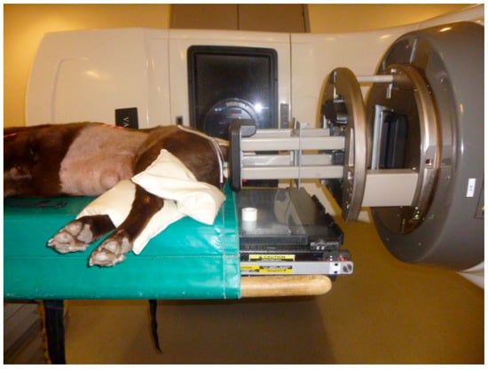 - Anderson, C.R.; McNiel, E.A.; Gillette, E.L.; Powers, B.E.; LaRue, S.M. Late complications of pelvic irradiation in 16 dogs. Vet. Radiol. Ultrasound 2002, 43, 187–192. [Google Scholar] [CrossRef] [PubMed]