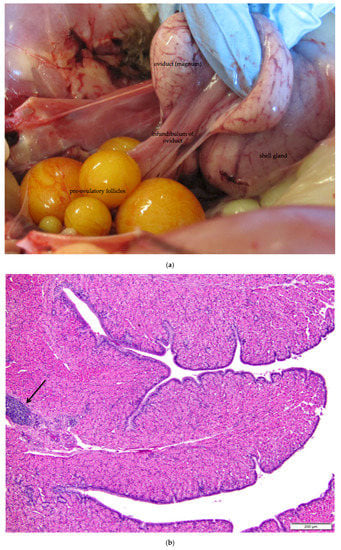 - Barnes, H.J.; Fletcher, O.J.; Abdul-Aziz, T. Reproductive system. In Avian Histopathology, 3rd ed.; Fletcher, O.J., Abdul-Aziz, T., Eds.; American Association of Avian Pathologists: Jacksonville, FL, USA, 2008; pp. 348–391. ISBN 978-0-0789163-3-6. [Google Scholar]
