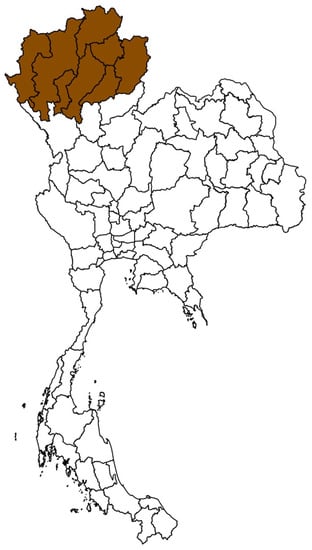 According to 2015 data from the Department of Livestock Development (DLD), there were 4,916,632 cattle, 888,431 buffaloes and 9,886,897 pigs in Thailand [,,]. Approximately 10% of those animals were located in the Northern part of Thailand that borders Myanmar and Laos. Animals in this area are susceptible to FMDV, which may enter Thailand with imported animals from neighboring countries.
