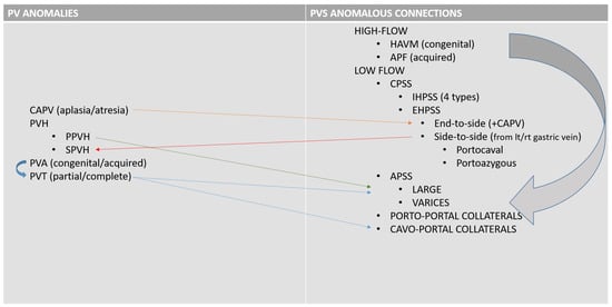 - Morgan, G.; Superina, R. Congenital absence of the portal vein: Two cases and a proposed classification system for portasystemic vascular anomalies. J. Pediatr. Surg. 1994, 29, 1239–1241. [Google Scholar] [CrossRef]