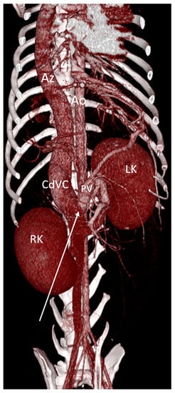 - Bertolini, G. Chapter 3.3 The Abdominal Vasculature, in Body MDCT in Small Animals; Springer International Verlag: Berlin, Germany, 2017; ISBN 978-3-319-46904-1. [Google Scholar]