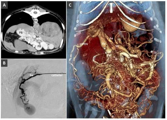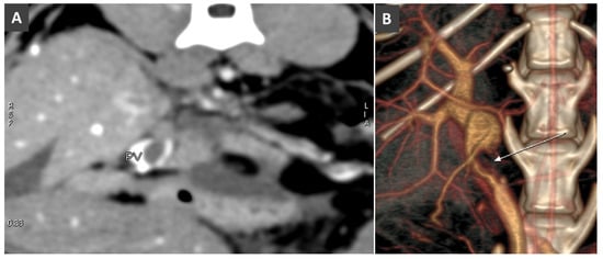 - Guzman, E.A.; McCahill, L.E.; Rogers, F.B. Arterioportal fistulas: Introduction of a novel classification with therapeutic implications. J. Gastrointest. Surg. 2006, 10, 543–550. [Google Scholar] [CrossRef] [PubMed]