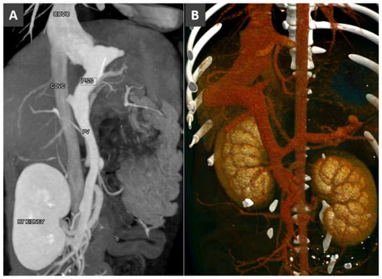- Park, J.H.; Cha, S.H.; Han, J.K.; Han, M.C. Intrahepatic portosystemic venous shunt. AJR Am. J. Roentgenol. 1990, 155, 527–528. [Google Scholar] [CrossRef]