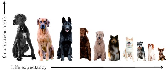 - Sapierzynski, R.; Czopowicz, M. The animal-dependent risk factors in canine osteosarcomas. Pol. J. Vet. Sci. 2017, 20, 293–298. [Google Scholar] [CrossRef]