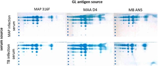 3.2. Cross-reactions of Immune Sera from MAP and MB Infected Cows