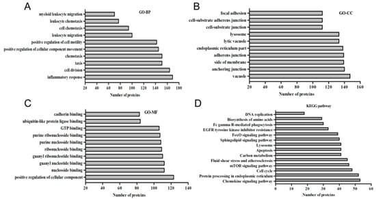 Our results also showed that BMDCs responded by activating its immune response genes and its signalling pathways as the stimulation progressed. A previous study reported upregulation of Alox12 in colorectal tumors, which is involved in inflammation []. Inflammasome is essential for the organism in controlling disease. In inflammatory responses, IL-1β conducted adaptive immune responses by inducing the expression of immunity associated genes. Thus, it was possible that Alox12 may have also been involved in inflammatory responses in BMDCs after stimulation with PPRV. In addition to its function in innate immunity, proliferation can decrease in live, nondividing cells as in senescence. By contrast, Reep5 was downregulated at the transcriptional level. GO analysis indicated that Reep5 was related to cell differentiation, cell proliferation and the immune system, which suggested that differentiation and proliferation of BMDCs may be inhibited when stimulated with PPRV []. This might be caused by a reduction in Reep5, which will require further research in our later program.