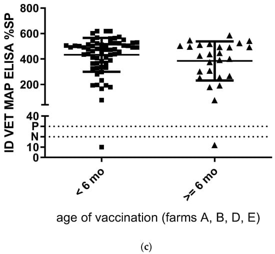 - Koets, A.P.R.L.; Ruul, R.; Dinkla, A.; Eisenberg, S.; Lievaart-Peterson, K. Effects of age and environment on adaptive immune responses to Mycobacterium avium ssp. paratuberculosis (MAP) vaccination in dairy goats in relation to paratuberculosis control strategies. Vet. Sci. 2019, 6, 62. [Google Scholar] [CrossRef]