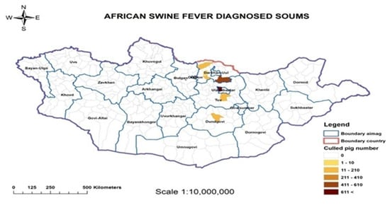 African swine fever cases in Mongolia (2019) by province and district including control measures and impacts on pig population.