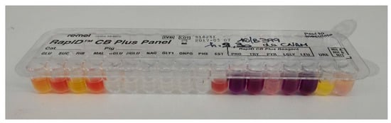 Biochemical gallery (RapID CB Plus, Remel, ThermoFisher, Italy) for strain 1.