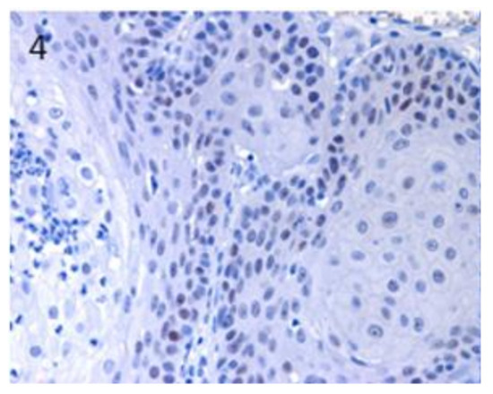 In BCC, a patchy distribution of immunostaining was observed. Magnification 40×.