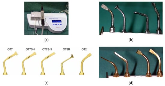 - Otake, Y.; Nakamura, M.; Henmi, A.; Takahashi, T.; Sasano, Y. Experimental Comparison of the Performance of Cutting Bone and Soft Tissue between Piezosurgery and Conventional Rotary Instruments. Sci. Rep. 2018, 8, 17154. [Google Scholar] [CrossRef] [PubMed]