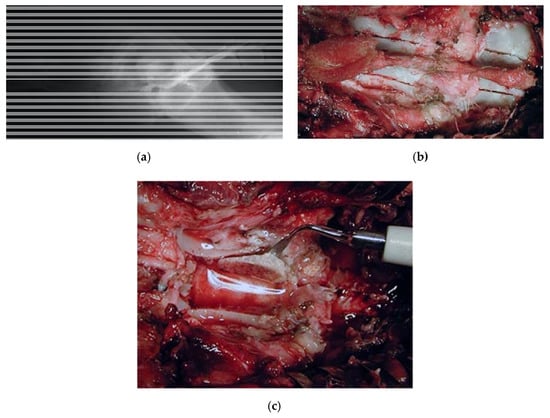 - Farrell, M.; Solano, M.A.; Fitzpatrick, N.; Jovanovik, J. Use of an ex vivo canine ventral slot model to test the efficacy of a piezoelectric cutting tool for decompressive spinal surgery. Vet. Surg. 2013, 42, 832–839. [Google Scholar] [CrossRef]