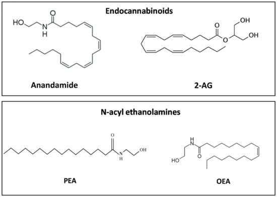 Chemical structure of representative endocannabinoids and related N-acyl ethanolamines.