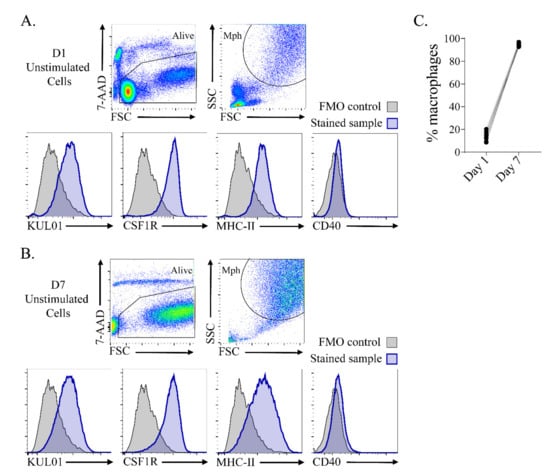3.1. In Vitro Culture Resulted in a Highly Homogeneous Macrophage Population after 7 Days of Culture