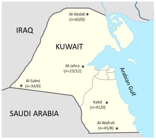 Al-Sherida, Y.; El-Gohary, A.H.; Mohamed, A.; El-Diasty, M.; Wareth, G.; Neubauer, H.; Abdelkhalek, A. Sheep Brucellosis in Kuwait: A Large-Scale Serosurvey, Identification of Brucella Species and Zoonotic Significance. Vet. Sci. 2020, 7, 132. https://doi.org/10.3390/vetsci7030132