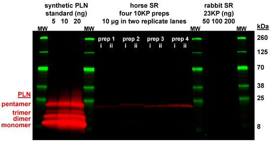 - Ablorh, N.-A.; Miller, T.; Nitu, F.; Gruber, S.J.; Karim, C.B.; Thomas, D.D. Accurate quantitation of phospholamban phosphorylation by immunoblot. Anal. Biochem. 2012, 425, 68–75. [Google Scholar] [CrossRef]