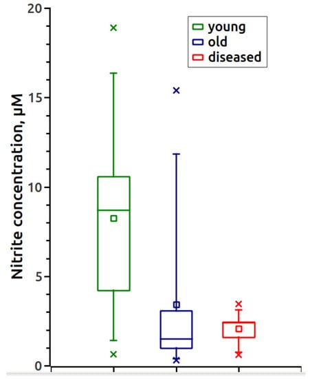 - Kleinbongard, P.; Dejam, A.; Lauer, T.; Rassaf, T.; Schindler, A.; Picker, O.; Scheeren, T.; Goedecke, A.; Schrader, J.; Schulz, R.; et al. Plasma nitrite reflects constitutive nitric oxide synthase activity in mammals. Free Radic. Biol. Med. 2003, 35, 790–796. [Google Scholar] [CrossRef]