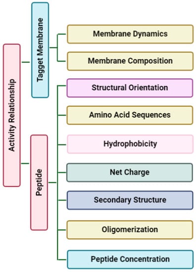 Physicochemical considerations that may impact structure-activity. These factors decide how effectively peptides burrow into the phospholipid bilayer. Membrane dynamics and membrane composition of the target membrane can affect the interaction with the amphipathic peptide.