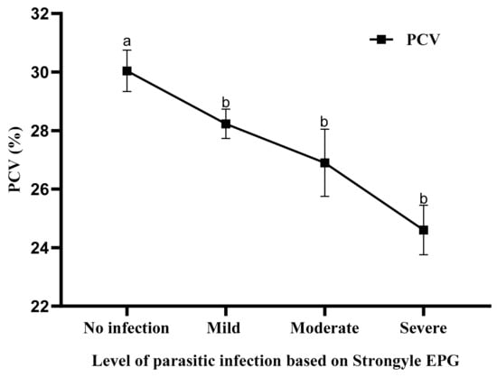 3.3. Effect of Different Levels of Strongyle Infection on the PCV of Small Ruminants from Negeri Sembilan, Malaysia