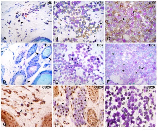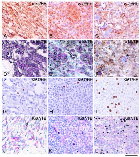 - Morini, M.; Bettini, G.; Preziosi, R.; Mandrioli, L. C-Kit Gene Product (CD117) Immunoreactivity in Canine and Feline Paraffin Sections. J. Histochem. Cytochem. Off. J. Histochem. Soc. 2004, 52, 705–708. [Google Scholar] [CrossRef]