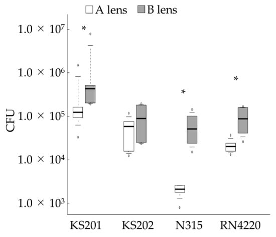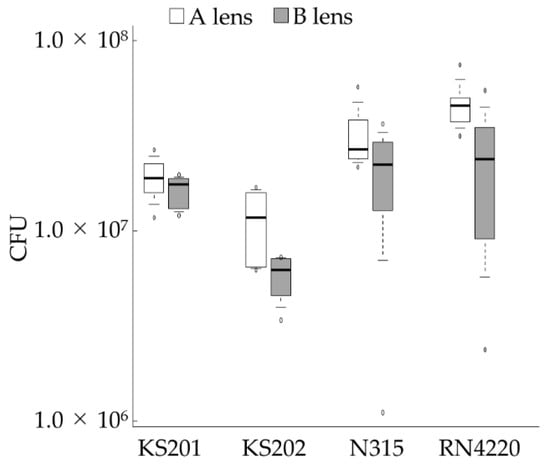 - Okajima, Y.; Kobayakawa, S.; Tsuji, A.; Tochikubo, T. Biofilm formation by Staphylococcus epidermidis on intraocular lens material. Invest. Ophthalmol. Vis. Sci. 2006, 47, 2971–2975. [Google Scholar] [CrossRef] [PubMed]