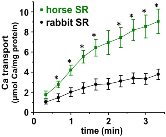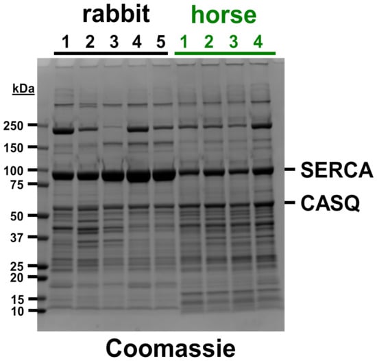 3.1. Horse SR Vesicles Contain an Abundant Amount of SERCA Protein, Although at a Lower Level Than Rabbit SR Vesicles