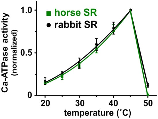 3.4. Horse and Rabbit SERCA Show Similar Temperature-Dependence of Ca2+-Activated ATPase Activity