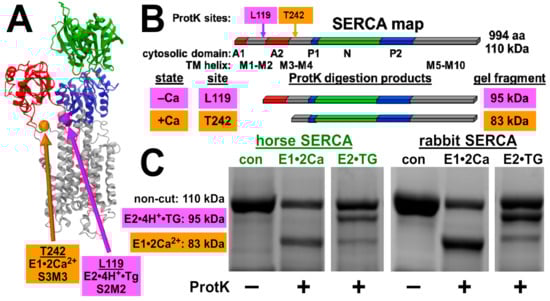 3.5. Horse and Rabbit SERCA Show Similar Ca2+-Dependent Cleavage by Proteinase K