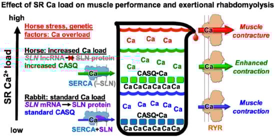 - Murphy, R.M.; Larkins, N.T.; Mollica, J.P.; Beard, N.A.; Lamb, G.D. Calsequestrin content and SERCA determine normal and maximal Ca2+ storage levels in sarcoplasmic reticulum of fast- and slow-twitch fibres of rat. J. Physiol. 2009, 587, 443–460. [Google Scholar] [CrossRef]
