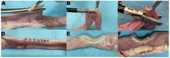 - Sanchez-De Pedro, F.; Moreno-Sanz, C.; Morandeira-Rivas, A.; Tenias-Burillo, J.M.; Alhambra-Rodriguez De Guzman, C. Colorectal anastomosis facilitated by the use of the LigaSure((R)) sealing device: Comparative study in an animal model. Surg. Endosc. 2014, 28, 508–514. [Google Scholar] [CrossRef] [PubMed]