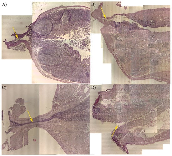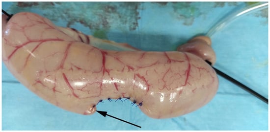 - Matz, B.M.; Boothe, H.W.; Wright, J.C.; Boothe, D.M. Effect of enteric biopsy closure orientation on enteric circumference and volume of saline needed for leak testing. Can. Vet. J. 2014, 55, 1255–1257. [Google Scholar]