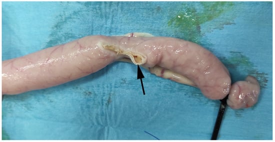 - Ellison, G.W. Intestinal obstruction. In Disease Mechanisms in Small Animal Surgery, 2nd ed.; Bojrab, M.J., Ed.; Lea & Febiger: Philadelphia, PA, USA, 1993; pp. 252–257. [Google Scholar]