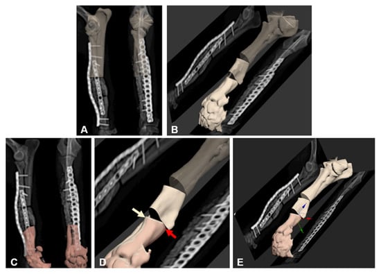 - Dismukes, D.I.; Fox, D.B.; Tomlinson, J.L.; Essman, S.C. Use of radiographic measures and three-dimensional computed tomographic imaging in surgical correction of an antebrachial deformity in a dog. J. Am. Vet. Med Assoc. 2008, 232, 68–73. [Google Scholar] [CrossRef] [PubMed]