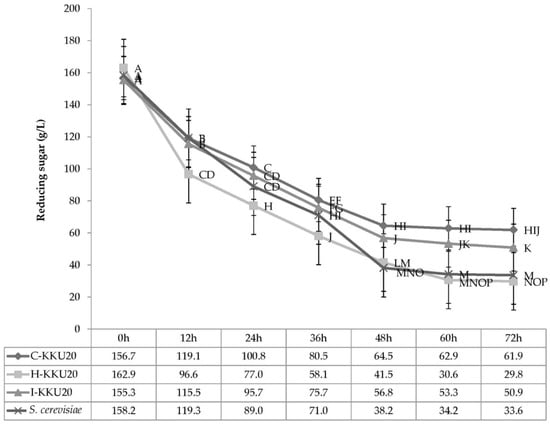 3.4.3. Effect of Incubation Time and Isolated Yeast Strains on Reducing Sugar