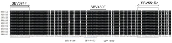 - Blanchard, P.; Guillot, S.; Antùnez, K.; Köglberger, H.; Kryger, P.; de Miranda, J.R.; Franco, S.; Chauzat, M.-P.; Thiéry, R.; Ribière, M. Development and validation of a real-time two-step RT-qPCR TaqMan® assay for quantitation of sacbrood virus (SBV) and its application to a field survey of symptomatic honey bee colonies. J. Virol. Methods 2014, 197, 7–13. [Google Scholar] [CrossRef] [PubMed]