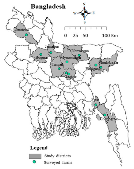 - Dolberg, F. Poultry Sector Country Review. Bangladesh. 2008. Available online: http://www.fao.org/3/ai319e/ai319e.pdf (accessed on 4 March 2021).