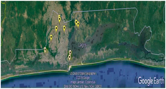 - Statistics on Population Density by Local Government Area Year 2006. Available online: http://mepb.lagosstate.gov.ng/storage/sites/29/2020/08/Digest-of-Statistics-2018.pdf (accessed on 17 April 2021).