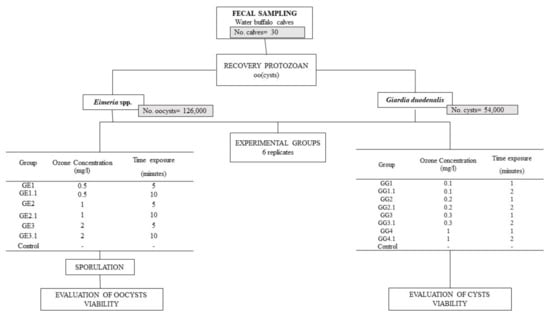 Morgoglione, M.E.; Bosco, A.; Ciuca, L.; Pepe, P.; Coles, G.C.; Cringoli, G.; Rinaldi, L. In Vitro Evaluation of Ozonated Water Treatment on the Viability of Eimeria Oocysts and Giardia Cysts from Water Buffaloes: A Proof-of-Concept Study. Vet. Sci. 2021, 8, 115. https://doi.org/10.3390/vetsci8060115