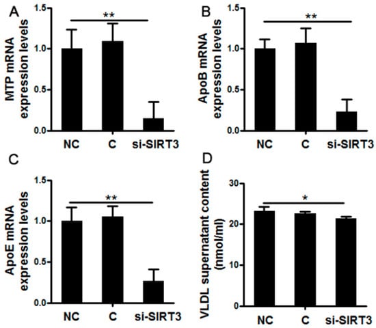 3.2. SIRT3 Silencing Decreased Very Low-Density Lipoprotein Synthesis and Assembly in Cow Hepatocytes