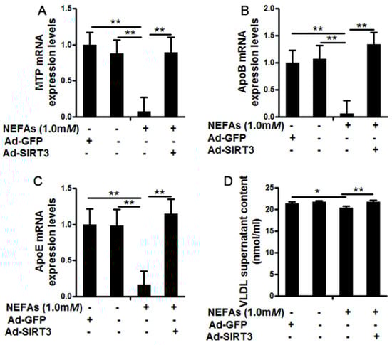 3.3. SIRT3 Reversed the Inhibition of Very Low-Density Lipoprotein Synthesis and Assembly by High Nonesterified Fatty Acids in Cow Hepatocytes