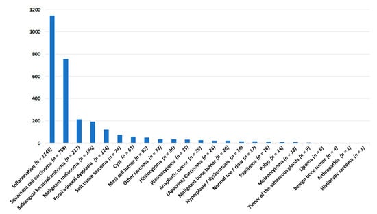 - Gruber-Beckmann, B.; Aupperle, H.; Staudacher, M. Histopathologische Diagnosen nach Amputation umfangsvermehrter Zehen bei Hund und Katze. Kleintier Konkret 2016, 19, 37–39. [Google Scholar] [CrossRef]