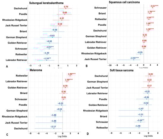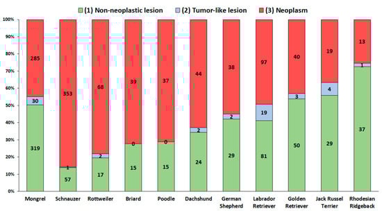 Grassinger, J.M.; Floren, A.; Müller, T.; Cerezo-Echevarria, A.; Beitzinger, C.; Conrad, D.; Törner, K.; Staudacher, M.; Aupperle-Lellbach, H. Digital Lesions in Dogs: A Statistical Breed Analysis of 2912 Cases. Vet. Sci. 2021, 8, 136. https://doi.org/10.3390/vetsci8070136