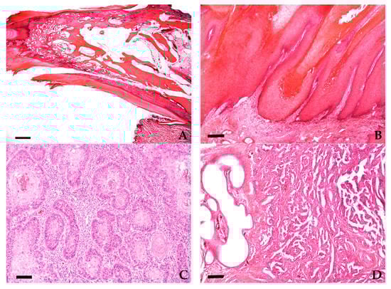 - Belluco, S.; Brisebard, E.; Watrelot, D.; Pillet, E.; Marchal, T.; Ponce, F. Digital squamous cell carcinoma in dogs: Epidemiological, histological, and immunohistochemical study. Vet. Pathol. 2013, 50, 1078–1082. [Google Scholar] [CrossRef] [Green Version]