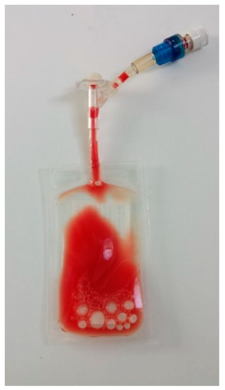 The leukocyte- and platelet-rich plasma (L-PRP) thus obtained (Figure 1) was collected through the perforable membrane with a sterile syringe. For each dog, leucocyte count (WBC/µL) and platelet count (PLT/µL) in an aliquot of WB and L-PRP were calculated by an automatic analyzer (Cell-Dyn 3500 analyzer, Abbott Diagnostics Europe). All samples were stored at room temperature on a laboratory blood rocker for 5 min before counts were performed.