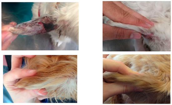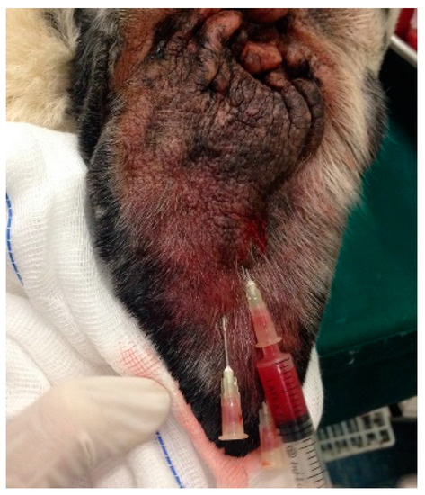 - Kuwahara, J. Canine and feline aural hematoma: Clinical, experimental, and clinicopathologic observations. Am. J. Vet. Res. 1986, 47, 2300–2308. Available online: https://europepmc.org/article/med/3490809 (accessed on 26 March 2021). [PubMed]