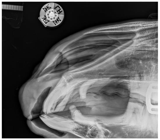 Hyperbaric oxygen therapy (HBOT) is a safe, stress-free method that can be used as an adjunct therapy for a wide variety of conditions. This method involves administering an increased concentration of oxygen at a pressure higher than ambient, which allows the concentration of oxygen dissolved in the plasma to be multiplied [,,,]. As a result, the increased oxygen concentration reaches the diseased tissues, even those with poor blood supply []. Among other things, this supports the aerobic mechanisms of action of neutrophils killing anaerobic bacteria [,]. HBOT stimulates the angiogenesis process, reduces tissue swelling, and stimulates the proliferation of fibroblasts []. This allows for the acceleration of wound healing and shortens the recovery time after surgical procedures. Despite the fact that there are centers in the world where HBOT is used, there are not many literature reports on its effectiveness. This therapy is well-documented in human medicine, including human dentistry, where the process of treating single cases is most often depicted, mainly for difficult-to-heal wounds [,,,,,]. According to the authors’ knowledge, this is a description of the first use of HBOT in equine dentistry, therefore our observation was performed as a pilot study. Moreover, the normal healing process compared to assisted healing with HBOT has not yet been documented.