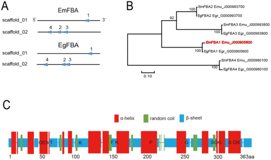 2.4. Polymerase Chain Reaction and Prokaryotic Expression of EmFBA1