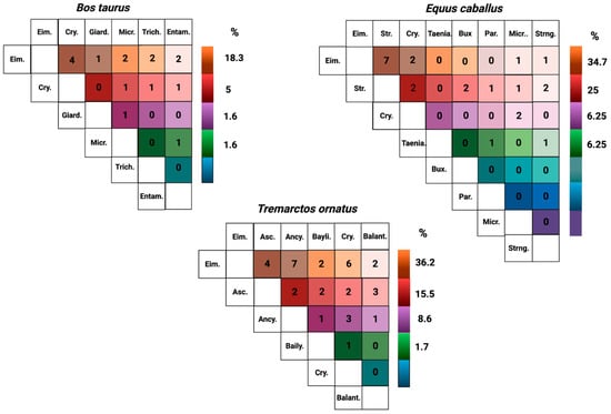APA StyleZárate Rodriguez, P. T., Collazos-Escobar, L. F., & Benavides-Montaño, J. A. (2022). Endoparasites Infecting Domestic Animals and Spectacled Bears (Tremarctos ornatus) in the Rural High Mountains of Colombia. Veterinary Sciences, 9(10), 537. https://doi.org/10.3390/vetsci9100537